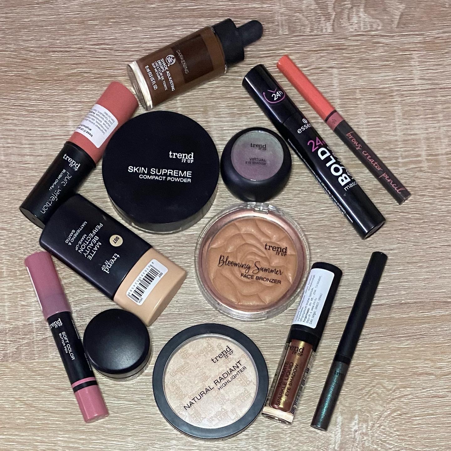 Ma egyféle márkával akartam sminkelni (TIU) de rájöttem, hogy nem tudom teljes mértékben kivitelezni, mert nincs sem spirálom, sem szemöldökcuccom, sem pedig szemhéjbázisom a márkától. Ráadásul a szemsminkem sem tetszik