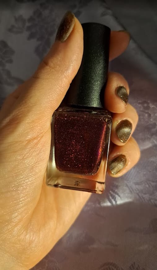 Évek óta nem vettem körömlakkot, de ennek nem tudtam ellenállni. Élőben sokkal szebb sötétlila és élénk narancssárga csillámokkal. Mint egy naplemente…