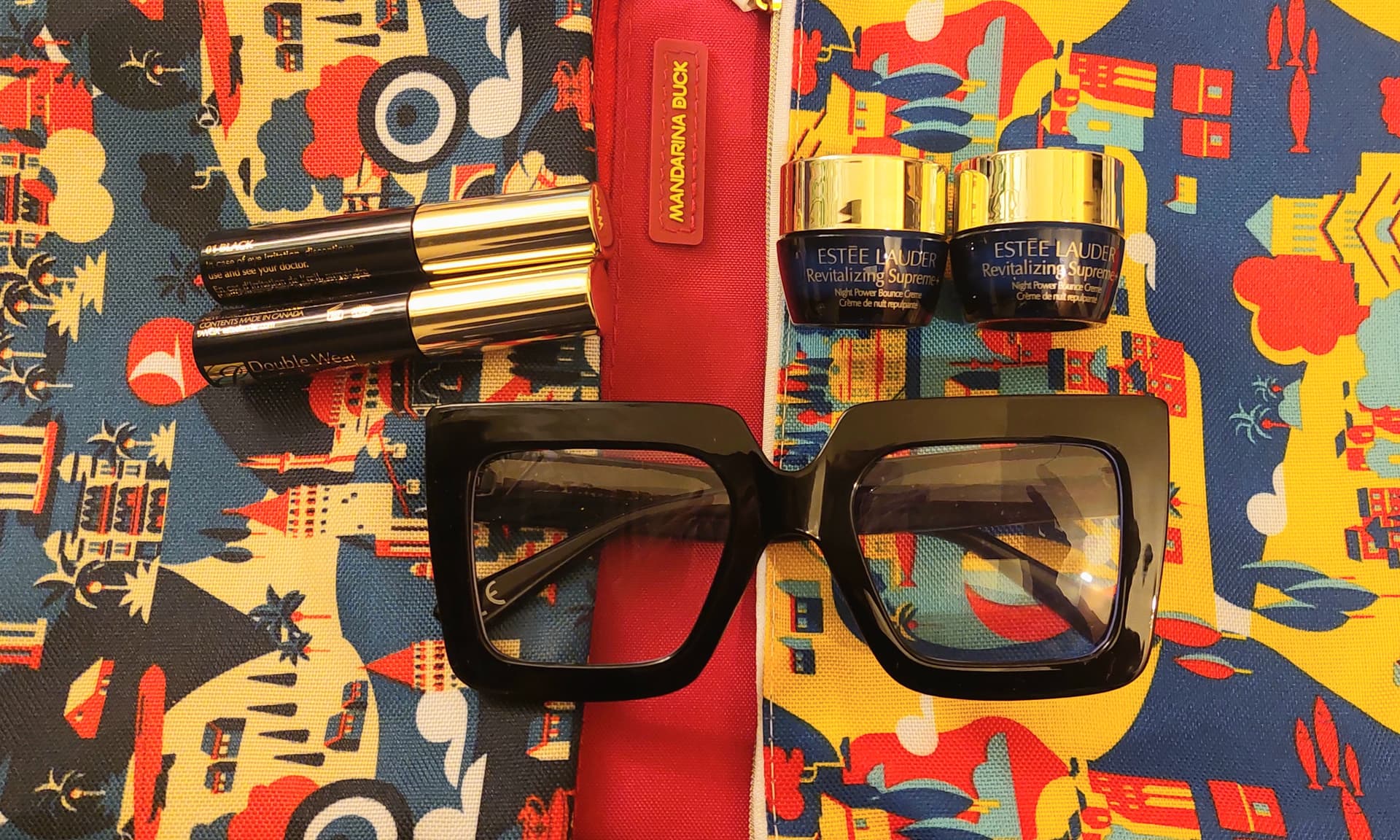 3 színes neszi van alul, 4 db mini kence és egy kicsit Iris Apfeles olvasószeműveg feketében