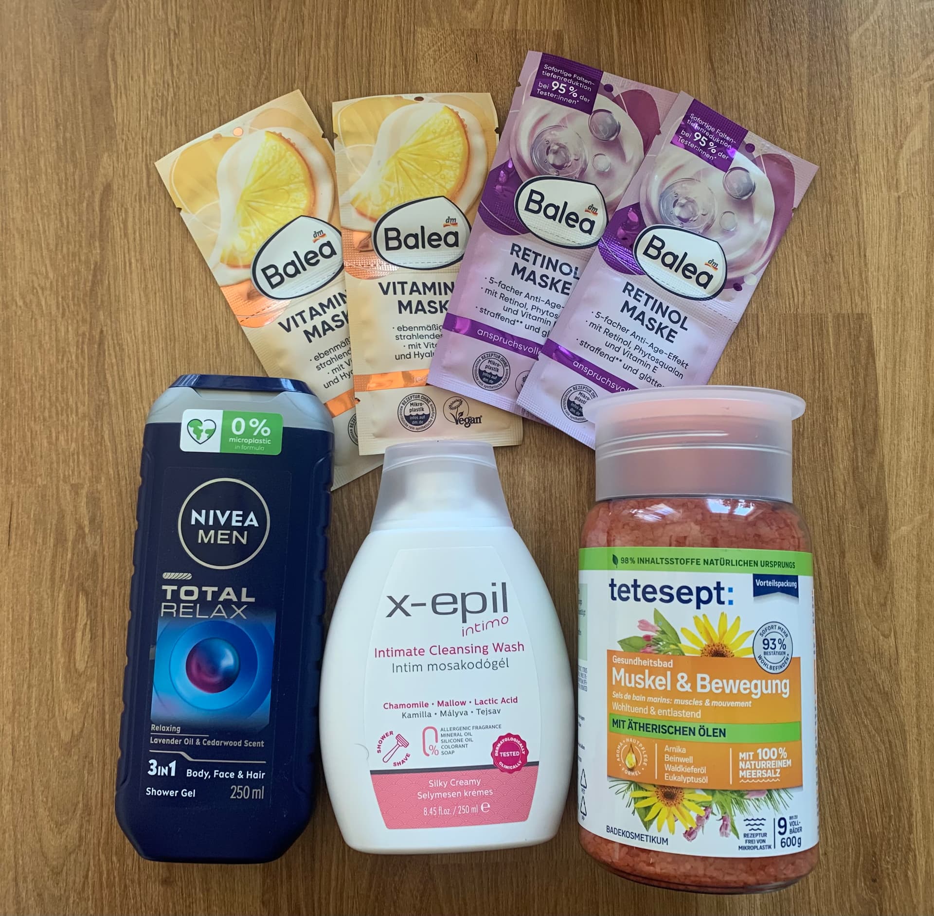 Dm-ből arcmaszkok, intim mosakodó sokadszorra újravevősek, a fürdősó és a tusi a páromé.